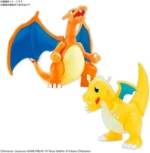 El model kit de Charizard y Dragonite de Bandai pertenece a la línea Pokémon Plamo Collection, una serie de maquetas armables que destacan por su facilidad de construcción y buen nivel de detalle.