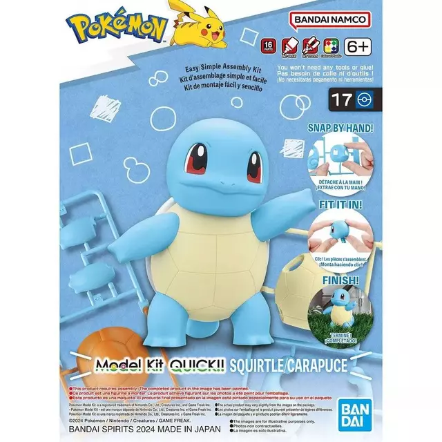 Los model kits de Pokémon de Bandai son figuras de plástico para montar inspiradas en personajes de la franquicia Pokémon. Están diseñados para ser divertidos y accesibles, con piezas que se encajan de forma sencilla y sin necesidad de herramientas especializadas. Cada kit suele venir con instrucciones y, en muchos casos, algunas articulaciones básicas que permiten posar la figura terminada.